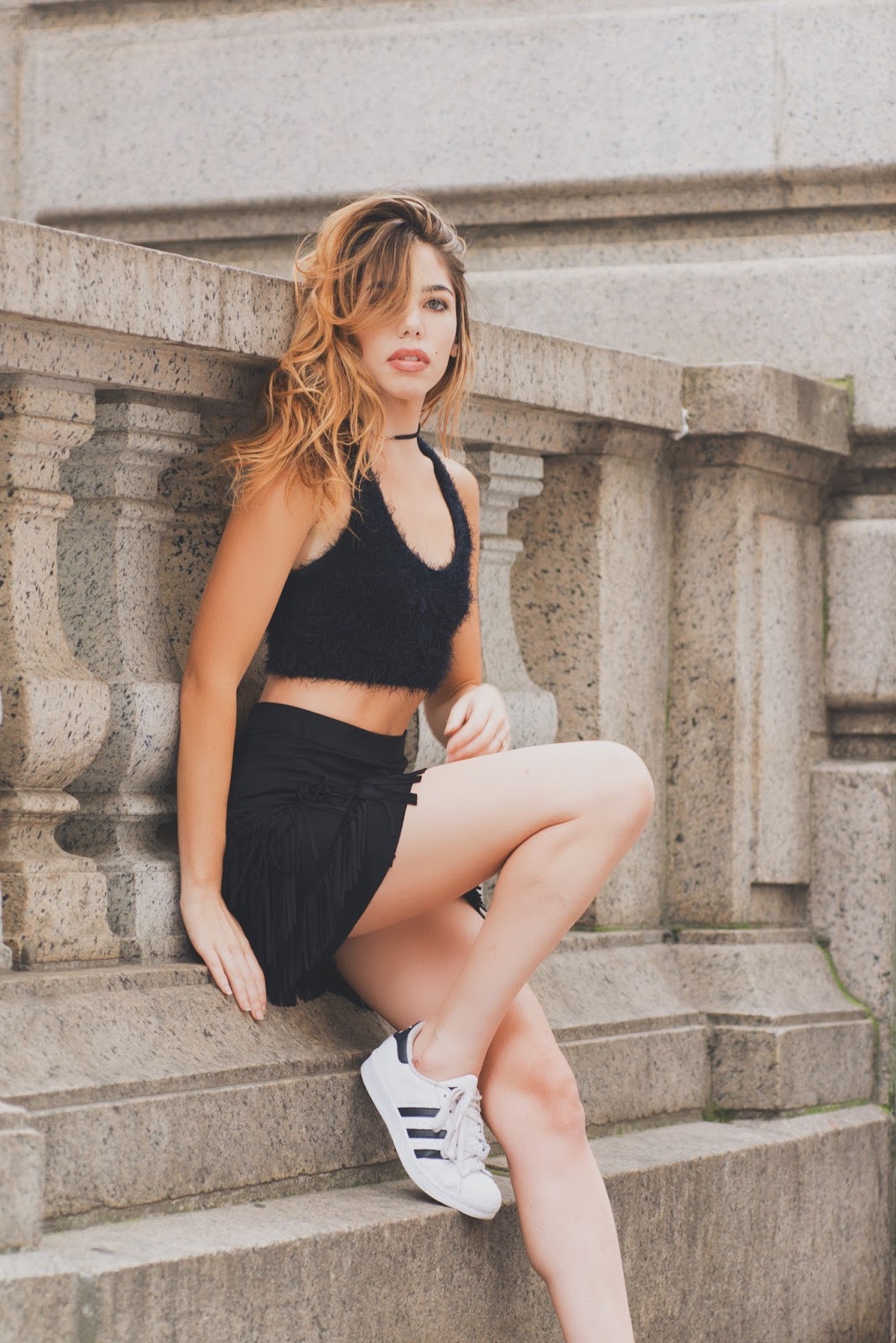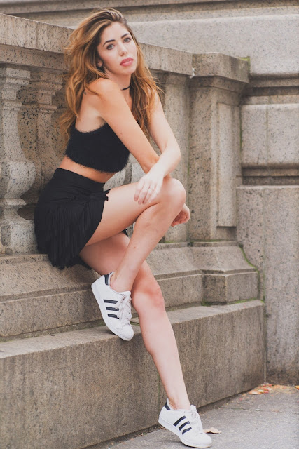 Hello all of you boys and bombshells reading this!I turned into a detective and looked through the internet to find the best mini skirts for under $100. A good mini skirt will be one of your most versatile pieces for fall. I've been able to make so many outfits just off of one skirt! It kind of reminds me of that infamous math problem we all saw in our textbooks where Sue has 3 socks, 4 shorts, and 3 blouses, how many outfits can she make? In fashion, this is the only time I have appreciated math! If you're planning on running errands or keeping it casual, just add Adidas for a more streetwear look. For work you can wear pointy ballet flats, or add booties for date night and show off those legs. When it get's chilly I'm just going to put a pair of tights on underneath. For tops the possibilities are endless too... I wore a neutral colored sweater which adds texture and keeps me cozy. I also styled it with a lace crop top and moto jacket.