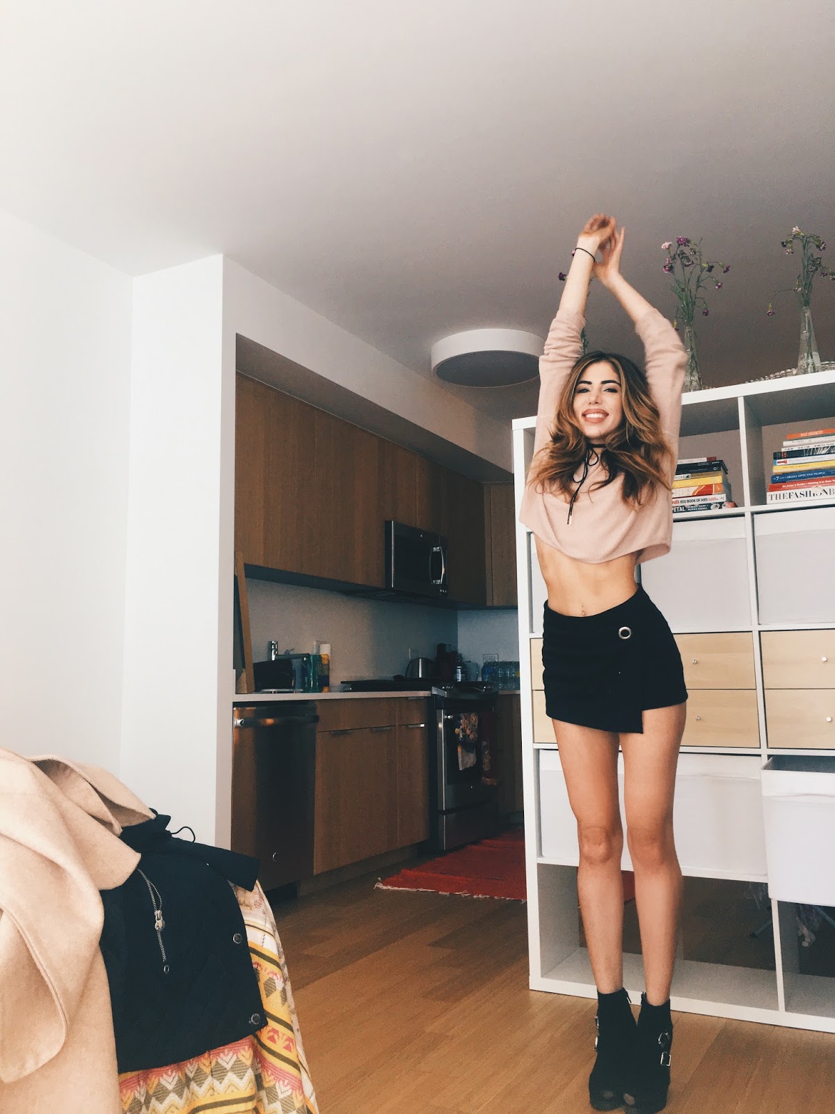 Also, you may notice a gigantic 8 foot tall bookshelf behind me. That is because it exists. And you can get it at IKEA, and if you are living in NYC and need to flex a bedroom this works as a great room divider. It is pretty long (you can’t see the end of it in this picture) and offers limitless options for storage. You can get cloth bins or install drawers like I did. I’m going to play around with the overall balance and display of it, but for now I’m amazed at how much organization it has added! I’ll do a whole post on my new apartment with organization and design tips from yours truly.